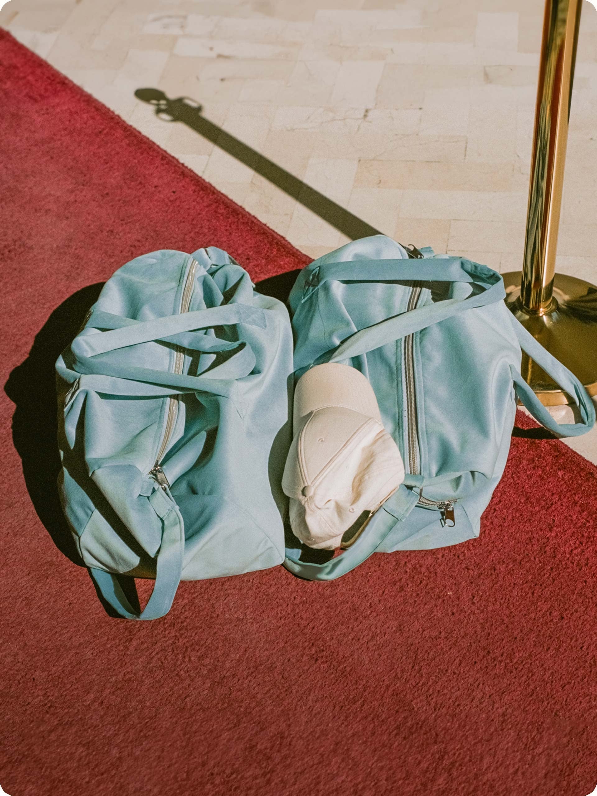 The Sillage Sky Weekender is made from a matte velvet fabric, which has a very cozy, light and dreamy feel while wearing. The bag's bottom part is also removable, allowing for easy washing.